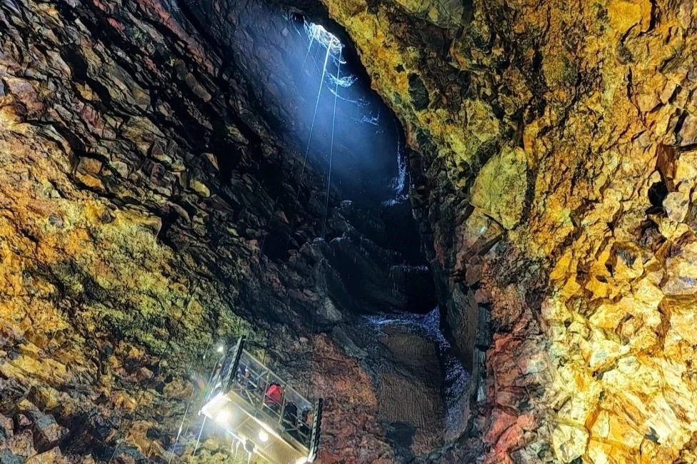Today’s adventure takes you inside the Earth, quite literally. Just outside Reykjavik is Þríhnúkagígur, the only place in the world where you can descend into a volcano’s actual magma chamber. After a scenic 45-minute hike across a lava field, you’ll arrive at base camp and take an open cable lift 400 feet down into the vast, colorful cavern that once held molten lava. The scale, silence, and surreal beauty of the space make it a truly unforgettable experience.